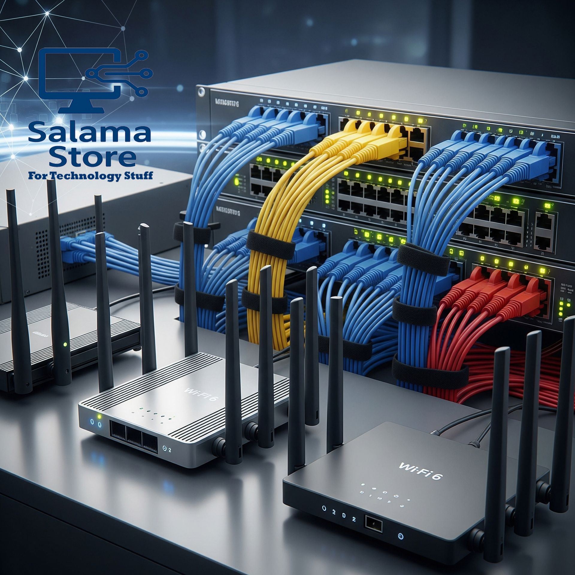 عشان تضمن إن اتصال الإنترنت عندك يكون سلس ومضمون، بنقدملك حلول شبكات متكاملة. بنوفّرلك كل اللي هتحتاجه عشان تبني أو تطوّر شبكتك، بما في ذلك الراوترات عالية الأداء، وكل الكابلات الأساسية، والسويتشات القوية، وده بيضمن إن بيتك أو مكتبك يفضل متوصل بالإنترنت من غير أي تقطيع.